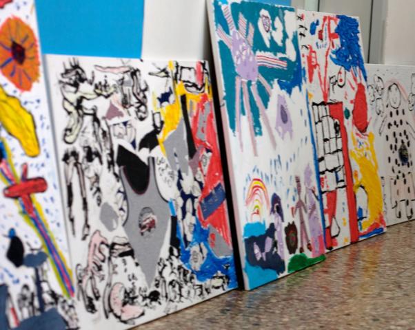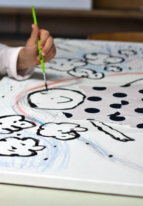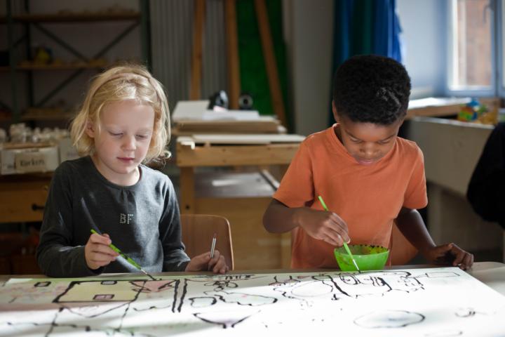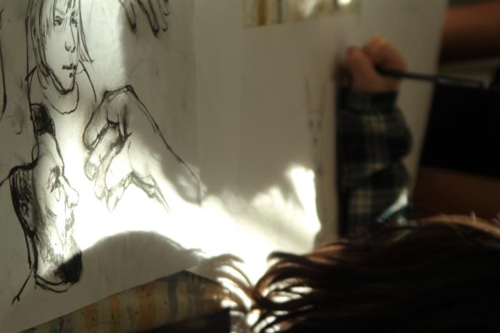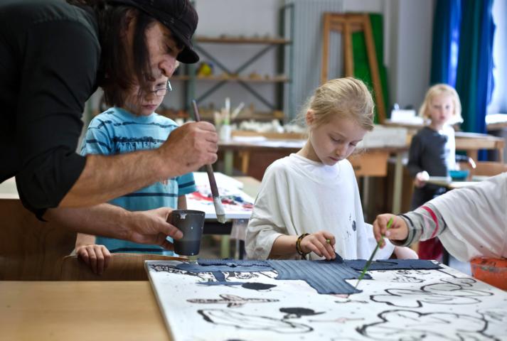 Kunst ansehen und machen gehören zusammen. Den Kindern wird das elementare Zeichnen von Menschen und deren Portraits nahegebracht - z.B. beim Besuch von Kunstausstellungen mit Zeichenblock.