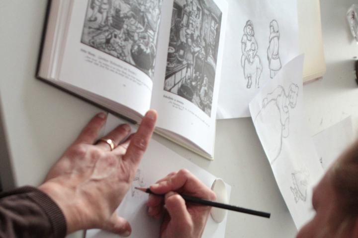 Die Zeichnungen werden kommentiert und korrigiert und die Erlebnisse beim Ausstellungsbesuch werden besprochen. | ||||